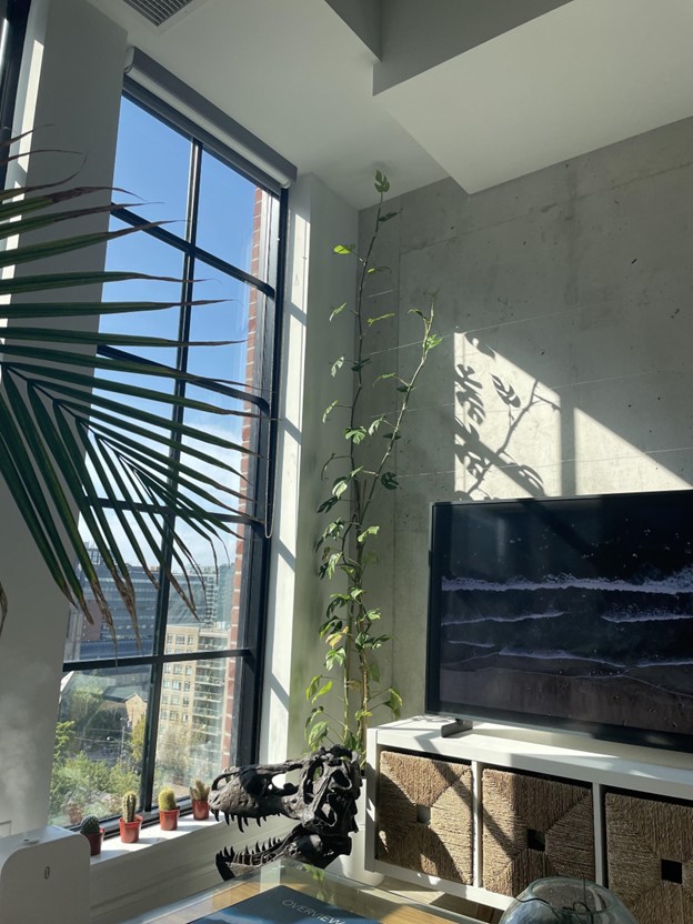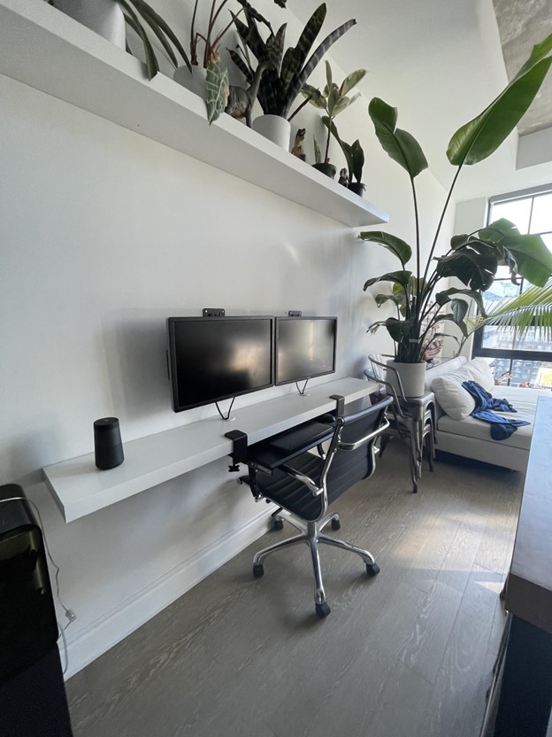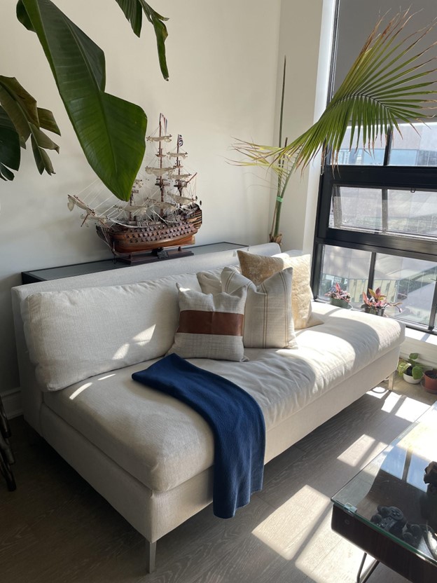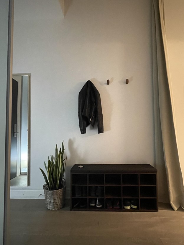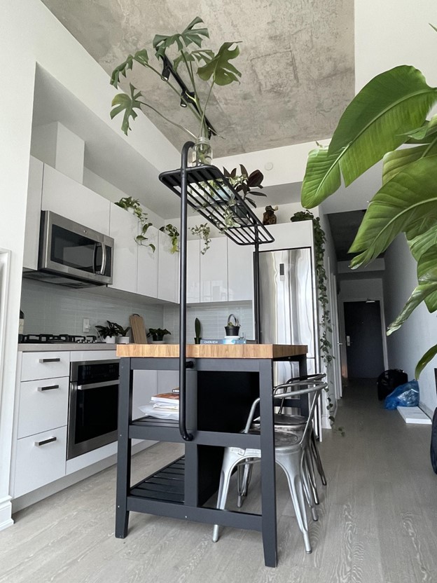 Sometimes we get so caught up with spaces horizontally that we forget that vertical space is as important. Measure the dimension of the height(s) of the room(s), since vertical spaces can be useful for hanging wall-mounted shelves, hooks for hats, book storage, art, or even hanging plants, all of which help optimize space.
